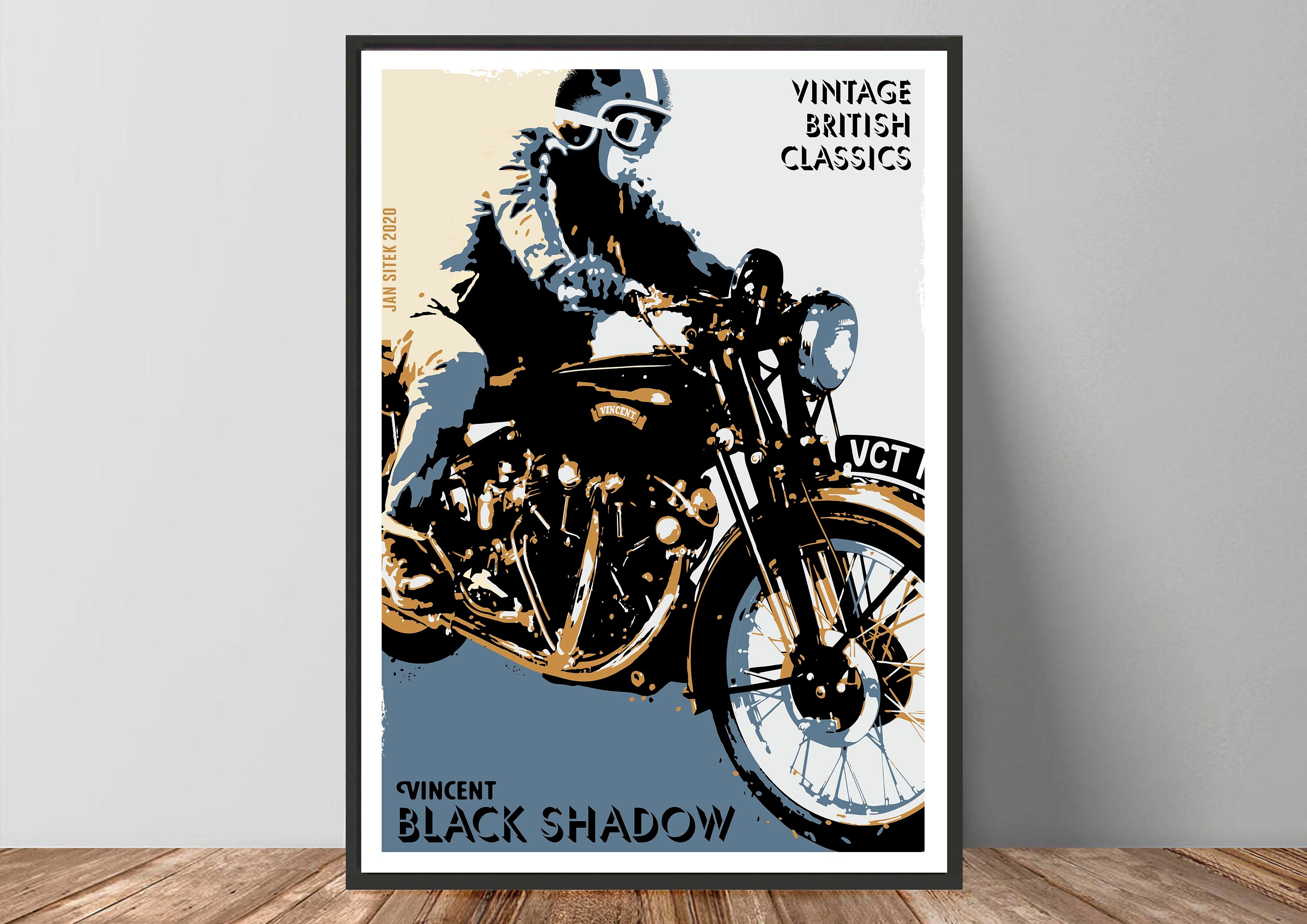 Vincent Black Shadow British Classic Motorrad Poster Man Etsy Osterreich