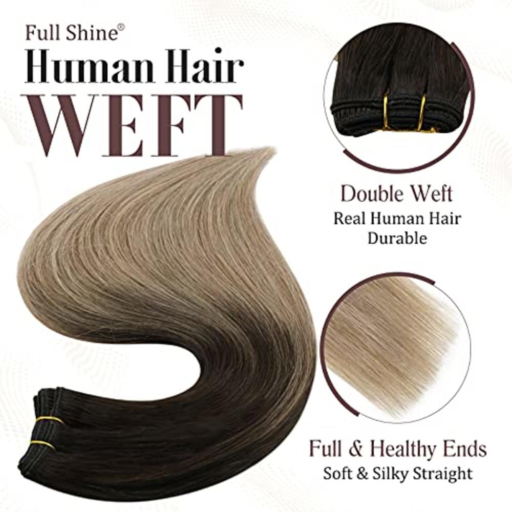 Full Shine 14 Inch Sew In Brown Hair Wefts Hair Extensions Human Hair Balayage Color 2 Darkest Brown Ombre 6 Brown And 18 Ash Bl